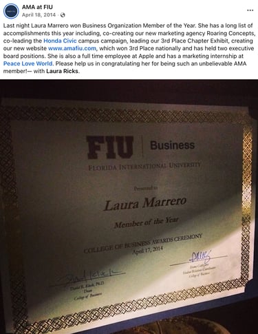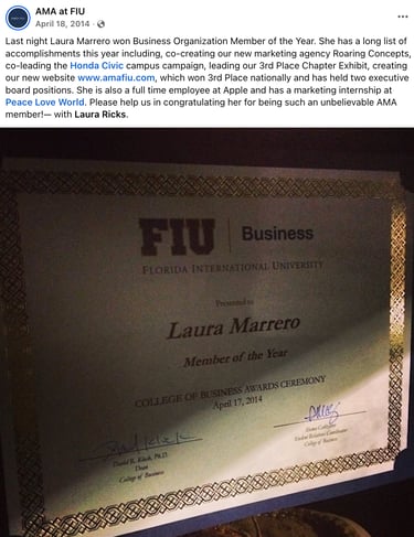 Estudié en Florida International University (FIU), donde formé parte del American Marketing Association (AMA).